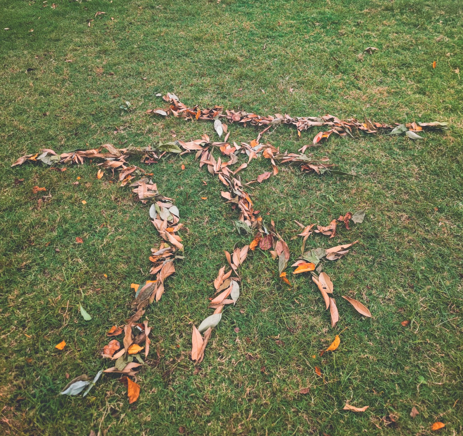 Leaf Palm is a site-specific earth drawing that extends my research on palmistry and destiny into the landscape. I first traced my own palm lines, turned them into a calligraphic figure, and vectorized it as a personal proto-character — a sign of my life path. Here, I translate that glyph into a land-art gesture by arranging fallen leaves on grass, scaling an intimate line from the body to the earth. The work explicitly references Martin Heidegger’s statement: “Poetically man dwells on this earth.” (Heidegger, “…dichterisch wohnet der Mensch…”, 1951). For me, this is not an abstract claim but a practice — dwelling becomes an act of composition. The piece frames everyday life itself as an artistic medium, where even a simple hand sign can become a cartography of presence. Its ephemerality is part of the work: it appears, it may vanish, yet the act of making becomes a way of inhabiting the world. CN: